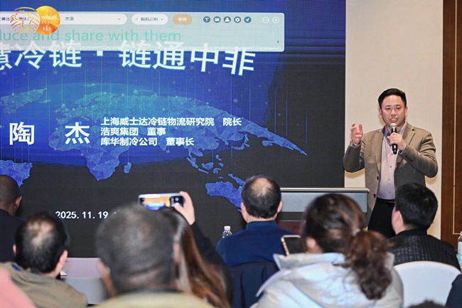 會議現(xiàn)場,上海威士達冷鏈物流研究院院長、浙江庫華制冷設備工程有限公司董事長陶杰,結合非洲農業(yè)現(xiàn)狀,分享冷鏈技術對非洲農業(yè)農機的助力作用,為非洲農業(yè)發(fā)展提供冷鏈新思路,助力全球零饑餓,提供新思考。